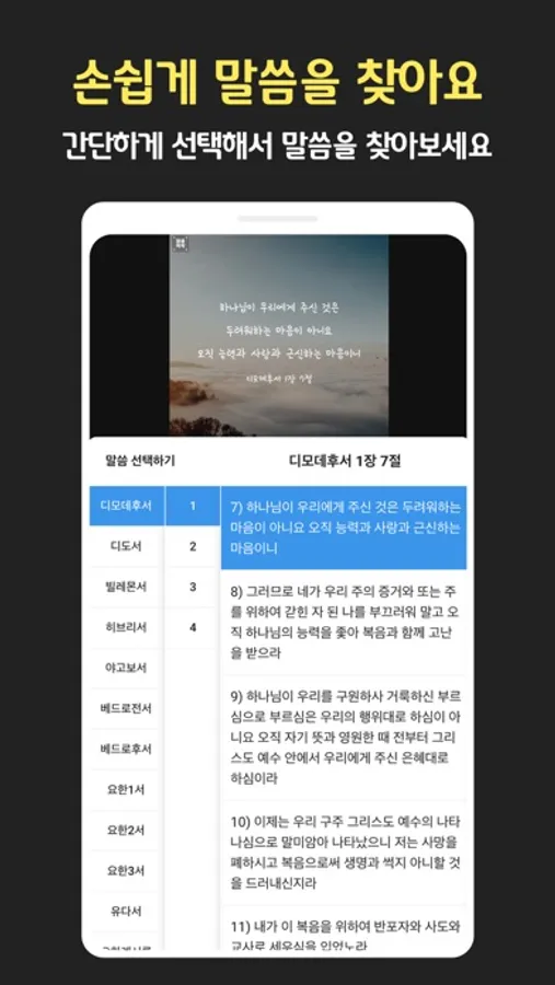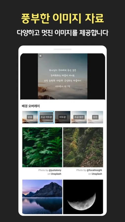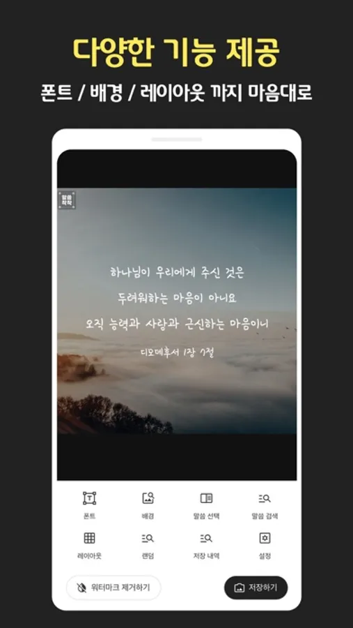 간직하고 싶거나 공유하고 싶은 성경 말씀을 이미지로 만들어 보세요.