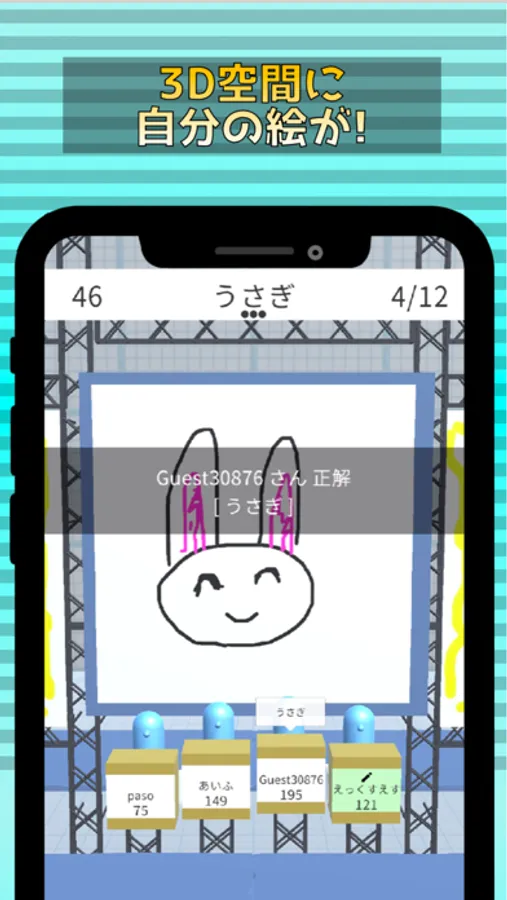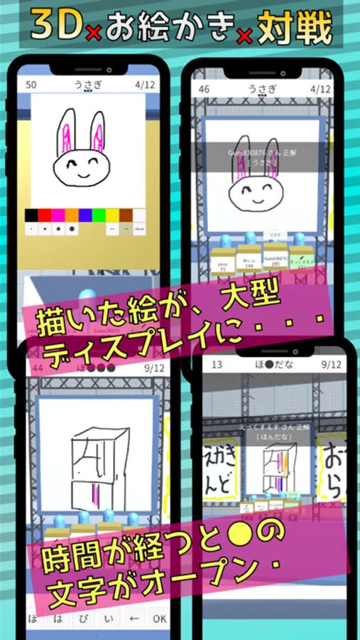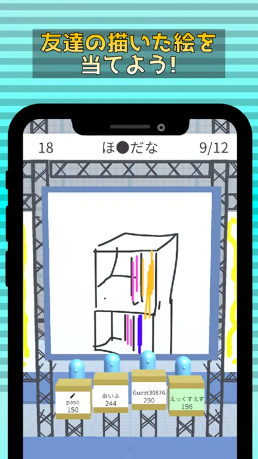 1. オンライン上のみんなと絵を描いて、それが何か、当てあいたい人