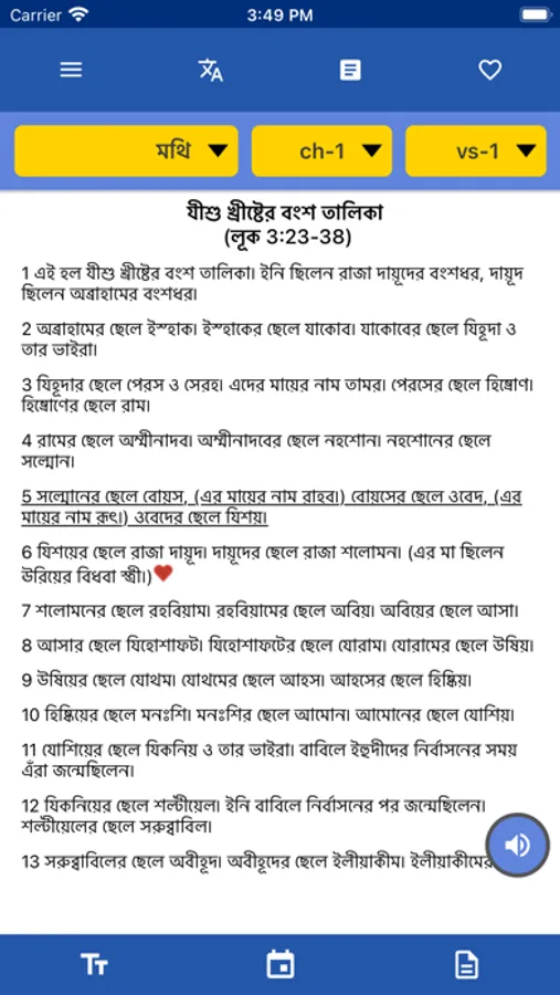 Presently this App has the Bengali complete Easy-to-Read Bible and the audio is available only for the New Testament. Later, the Old Testament Audio will be available and In the future other languages will be added. The App is simple to use and does not require any personal information of the user.