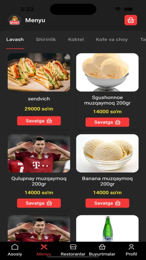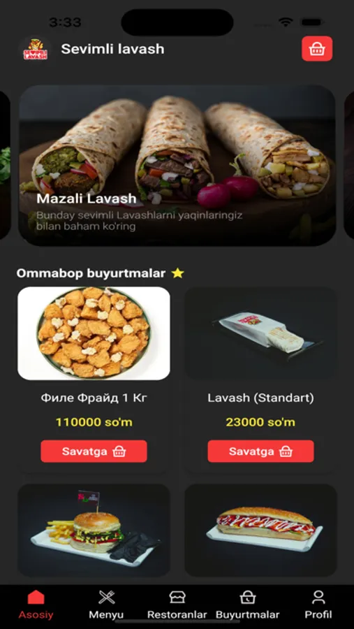 Barcha turdagi tez pishar taomlar - Lavash, Hot-dog, gamburger, ichimliklar.
