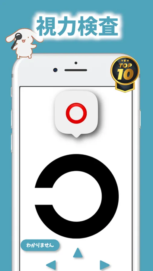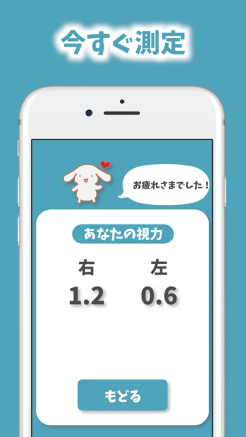 このアプリで測定した視力はあくまでも目安です。正確な視力は医療機関で測っていただくようにお願いします。