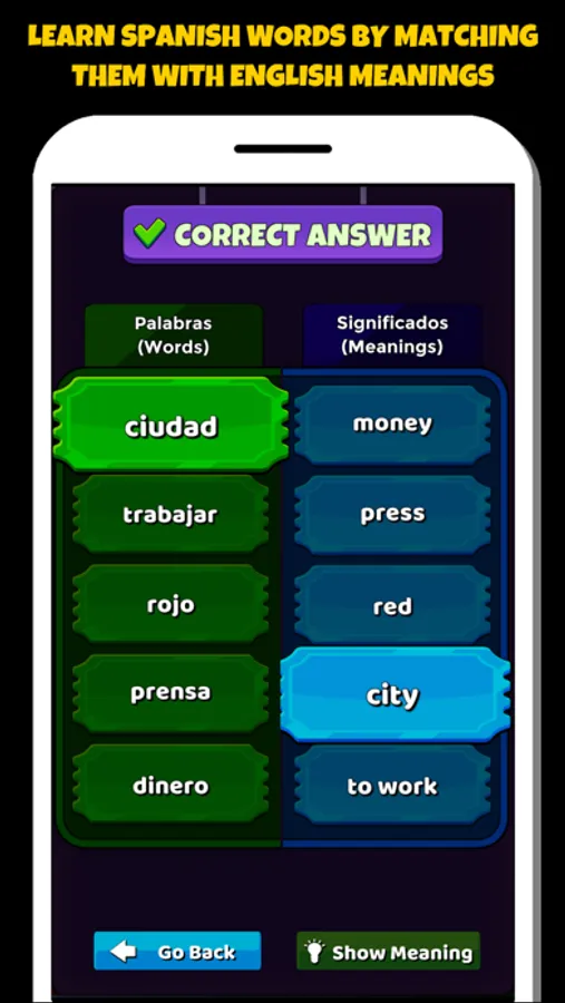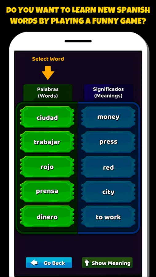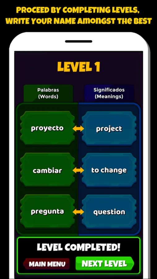 Learn spanish vocabulary easily and in a funny way with our Spanish word game. You can play on learning mode or you can compete with other learners on challenge mode. Download now free and start playing.