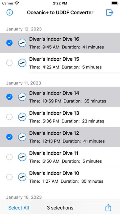Dive Converter allows users to retrieve their Oceanic+ dives and export selected dives in Universal Dive Data Format (UDDF). The app works on iOS (iPhone and iPad) and on macOS. We have taken special care of making sure that all information of your dive that is also supported by UDDF is translated correctly.