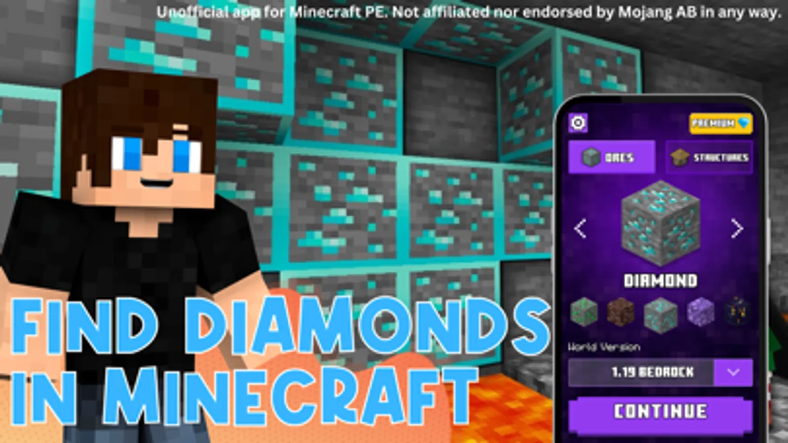 Diamond Finder for Minecraft allows you to easily locate valuable ores, biomes and structures in your Minecraft world, including diamonds, emeralds, gold, iron, lapis, redstone, and coal. Whether you're a beginner or an experienced player, this app will help you find the resources you need to progress through the game.