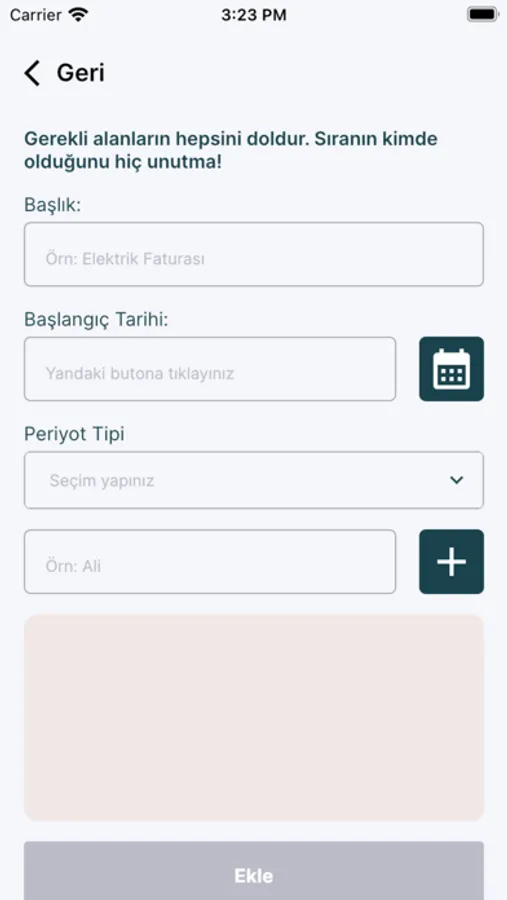 Sıra Kimde? ile Elektrik faturası, Dizi izleme platformu faturası gibi faturaların veya yapılacak işlerin sırasının kimde olduğunu hatırlamak için bildirim kurabilirsin. Sıra Kimde sıra değiştiğinde senin için bildirim gönderir. Aynı zamanda o an masada hesabı kimin ödeyeceğini çarkı çevirerek öğrenebilirsin!