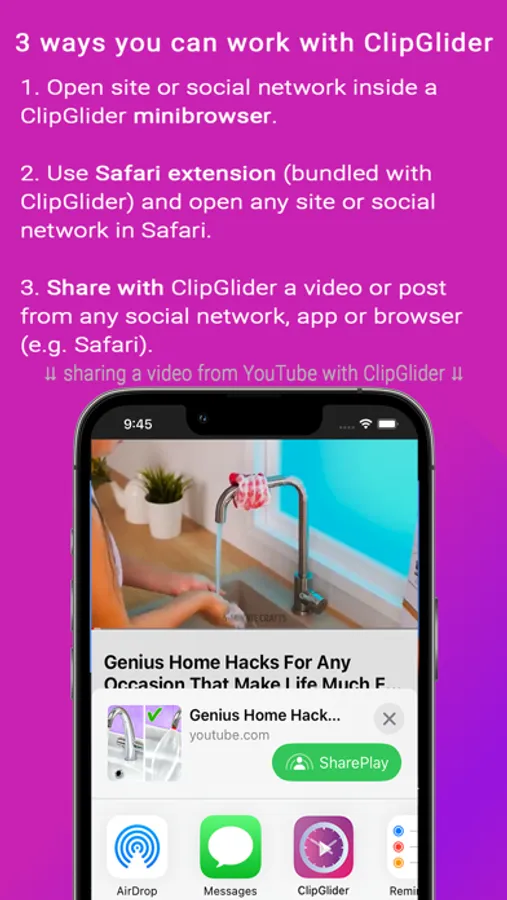 On every site and any social media, ClipGlider prompts to restore position where you've left playback of that video. Now you won't spend time seeking around video, trying to find position where you've stopped playback due to incoming call or browser reloading the tab.