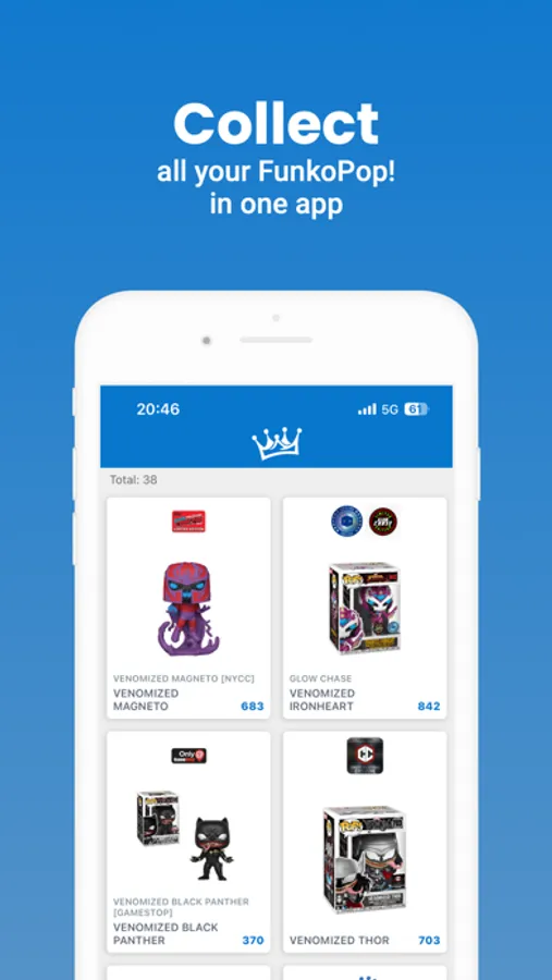 • Always keep track of the number of Funko Pop figures you own and monitor their values on eBay, Vinted, Kelkoo, Entertainment Earth, Fun.com, GameStop, EMP and more.