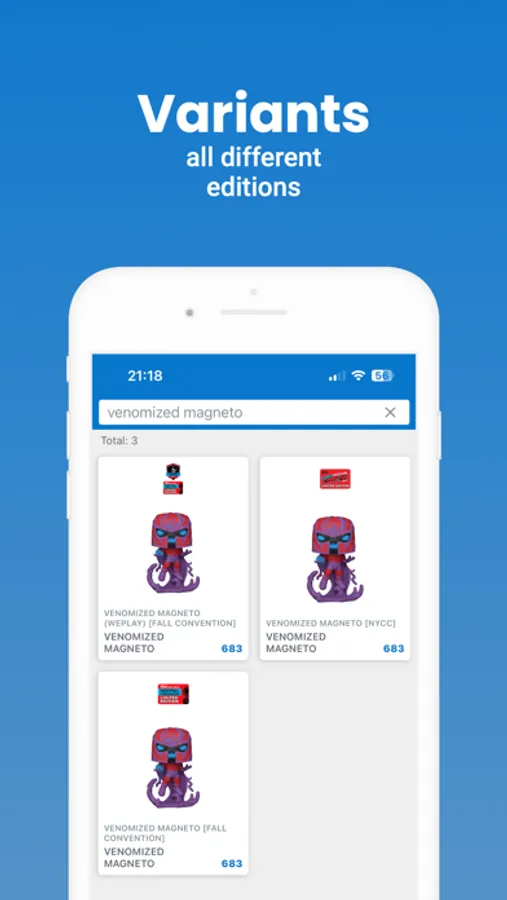 • in your collection you will be able to add different editions of the same Funko Pop!