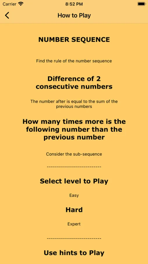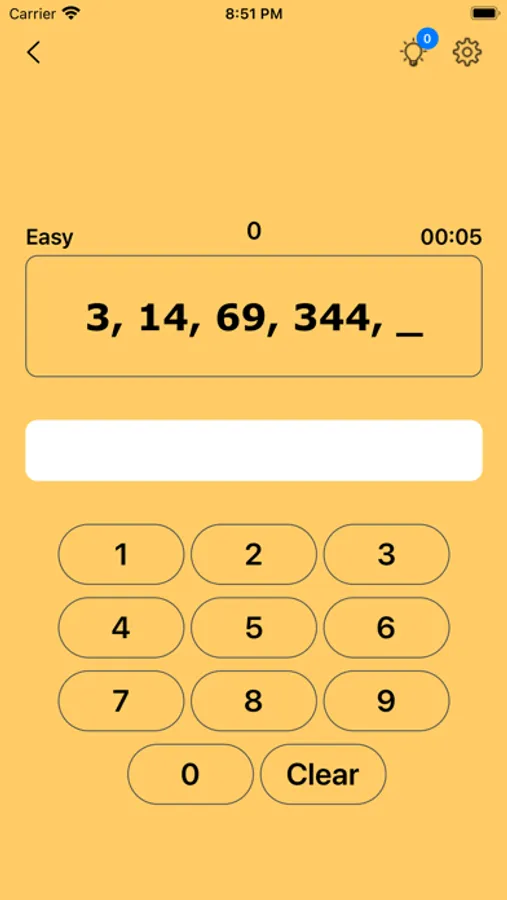 You need to find what is the missing number on the sequence. Select your level and get your High score.