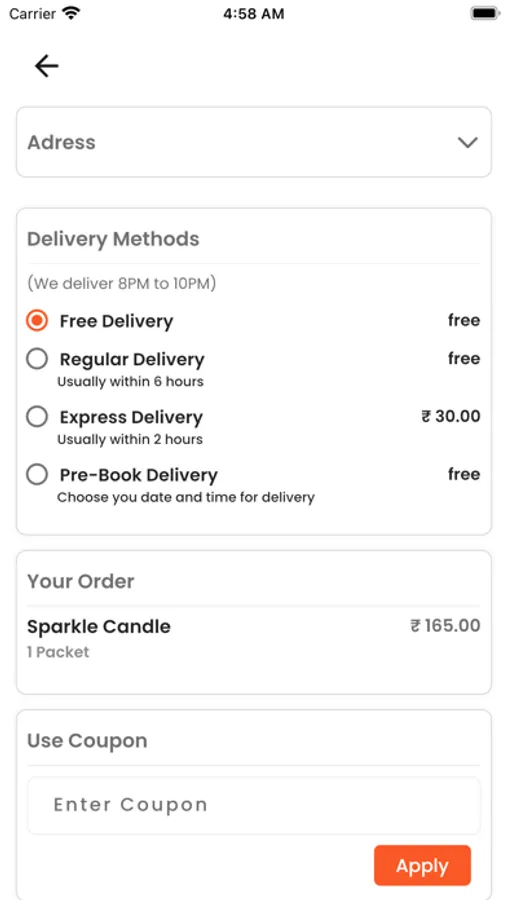 User login using mobile number and receives OTP in SMS. Once logged-in user can provide delivery address, choose delivery options, payment methods, and can place the Order.