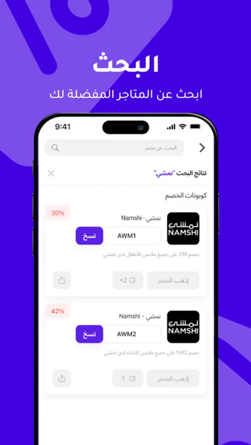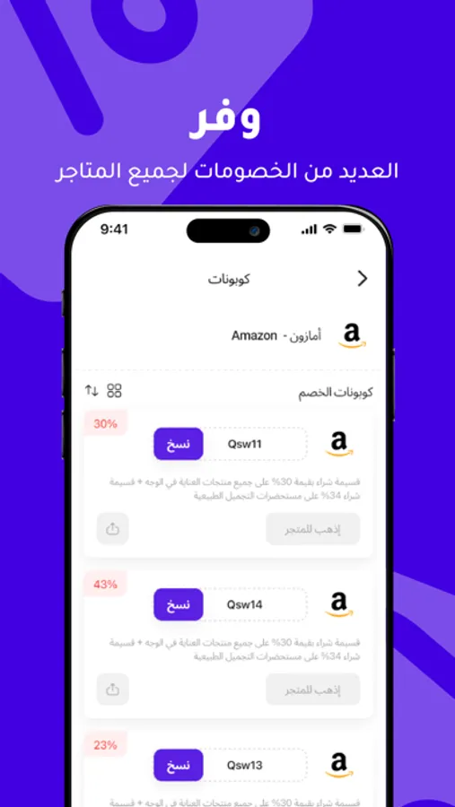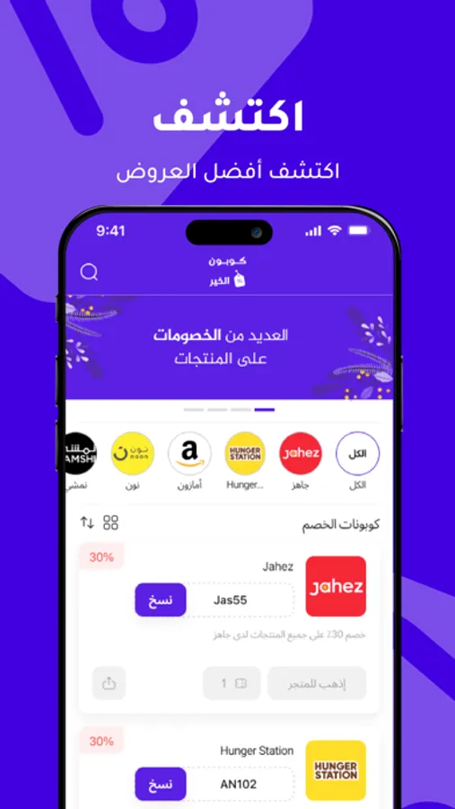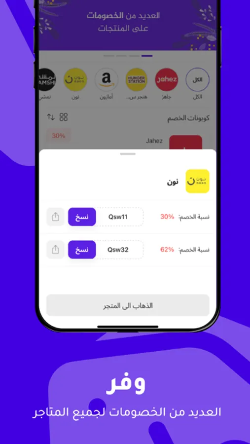 تطبيق يوفر لك عناء البحث عن أكواد خصم من أكبر المتاجر مثل أمازون ونون ونمشي وغيرها الكثير