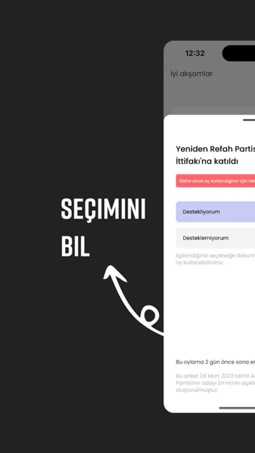 2023 seçimlerinde aday olan adayların ve seçime katılan siyasi partilerin açıklamalarını takip edin. Anketleri yanıtlayarak fikrinizi herkesle paylaşın. Adayınızı bilmeden oyunuzu vermeyin. Her zaman Seçimini Bil.