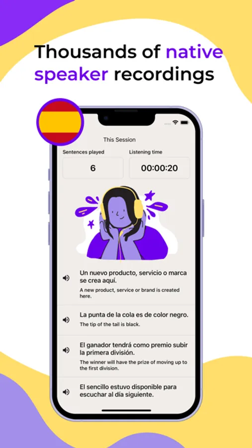 Finally understand native speakers - welcome to ListenUp Spanish, the ultimate app to help you improve your listening skills in Spanish! Join thousands of learners and start mastering Spanish by listening to authentic native speaker recordings. It's free to sign up and play!
