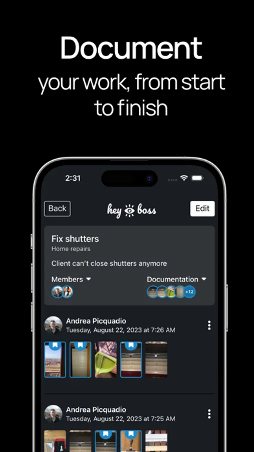 Meet heyboss - your digital work journal for any kind of manual work: home repair, construction, assembly, gardening -- if you do it, you better document it.