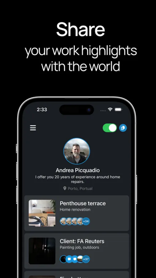 * Profile: develop your work profile and share its link on your social media profiles so that your work highlights can continuously generate leads for you