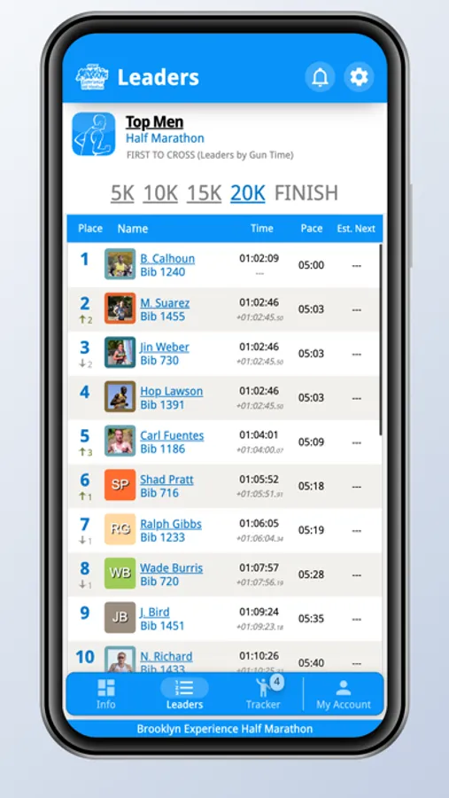 • Push Notifications: Track the progress of runners on-course and stay in the know of race weekend events