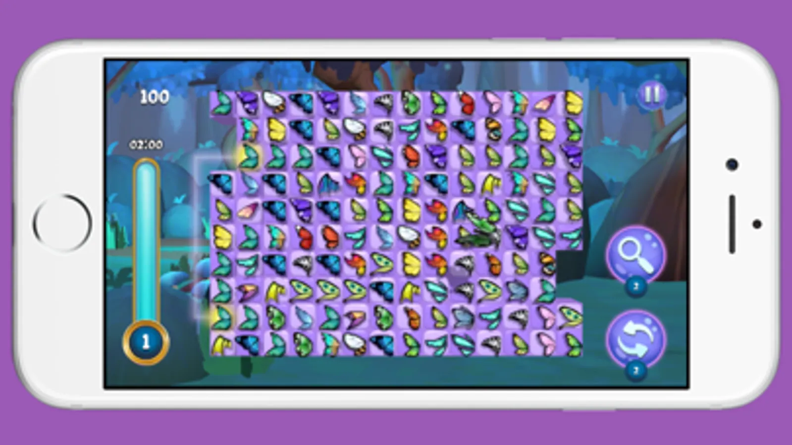 Match two of the same butterfly wings to create beautiful butterflies and make them disappear on the board. But beware! Other wings will block them from being matched, so you have to find the correct path and order to match them. But don't worry if you can't find a way to match them, since you can use power ups which will help you find the matches you are looking for. But keep in mind that those power ups are of limited use, so don't overuse them. So hop in and start creating beautiful Butterflies and watch them all fly to their new home!