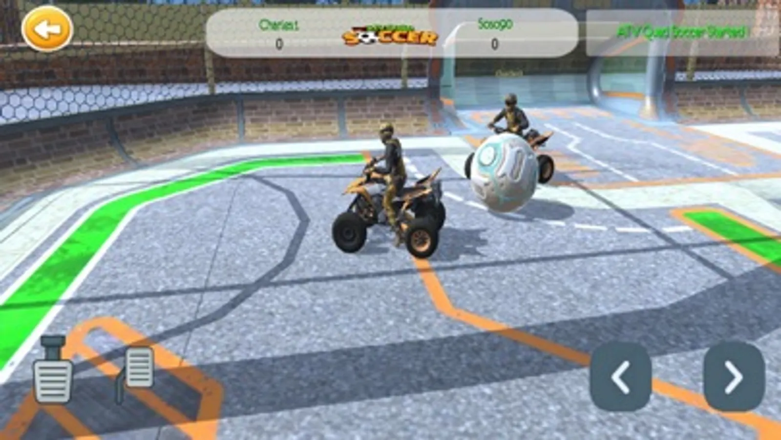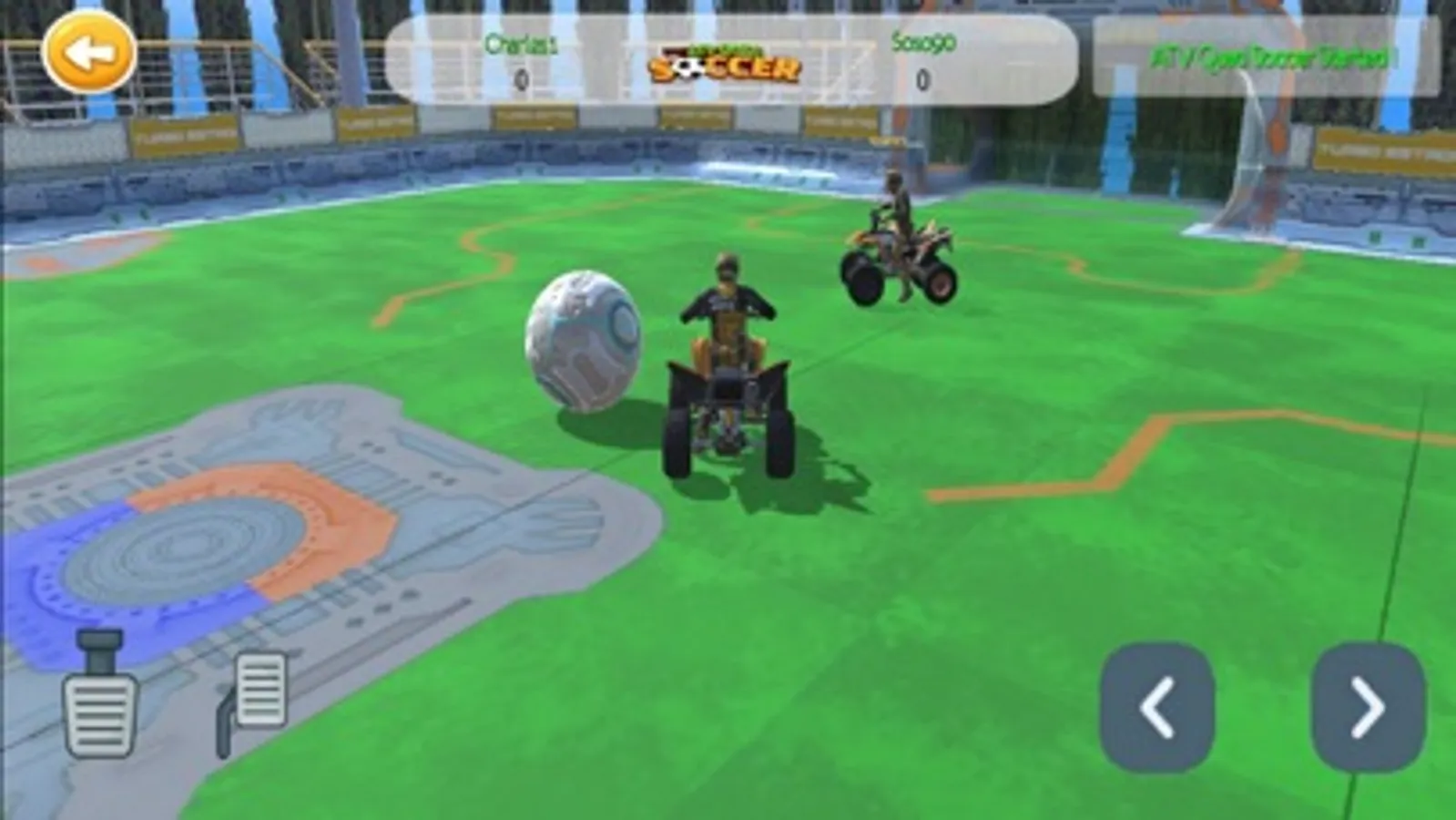 Drive your quad in a way to score goals in your opponent's side, the first player to score 3 goals will win the game and collect their opponent's corners.
