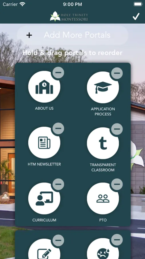 Your Holy Trinity app is fully customizable by you: Rearrange your portals to easily access whichever features you use most. If you want to check school events frequently, you can put that portal front and center. If you never check the PTO, you can turn that portal off.