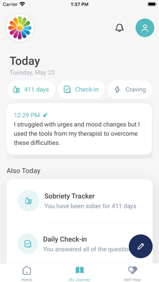 The Zinnia Health application supports users by providing an interface designed to maintain sobriety and prevent substance use relapse. From clinically reviewed daily check-ins to a sobriety clock, self-help articles and meditations, clinical surveys, personalized motivators, Zinnia-approved quotes, a journal, a savings tracker, and more - we are here to support you on your journey to lifelong sobriety.