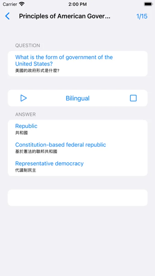 This is an exclusive application for Chinese individuals in the US who are preparing for seeking US Citizenship. "US Citizenship For Chinese" includes the following features: