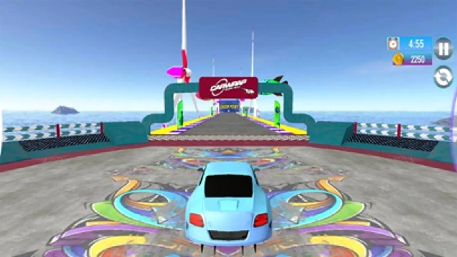 Adventure car racing game with impossible racing in the air. Fly in the sky on impossible tracks in the air and enjoy crazy driving and the beauty of stunts in this impossible racing car game.