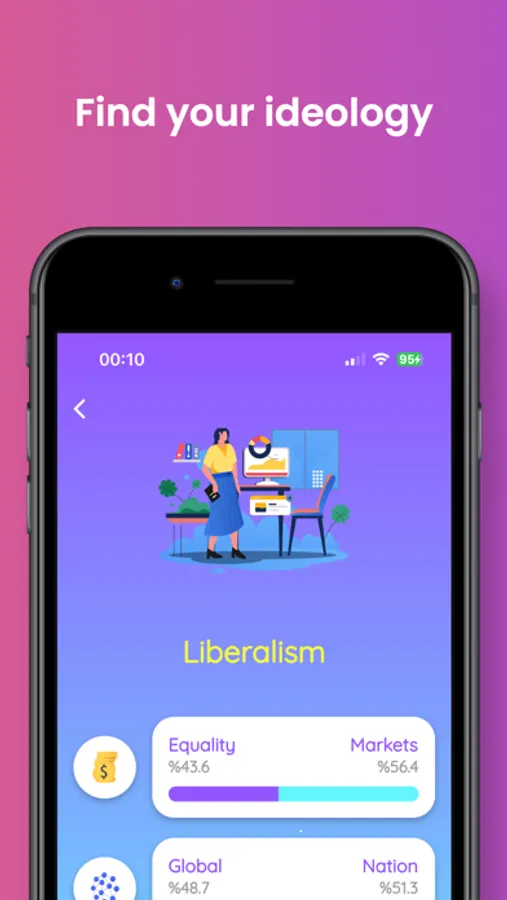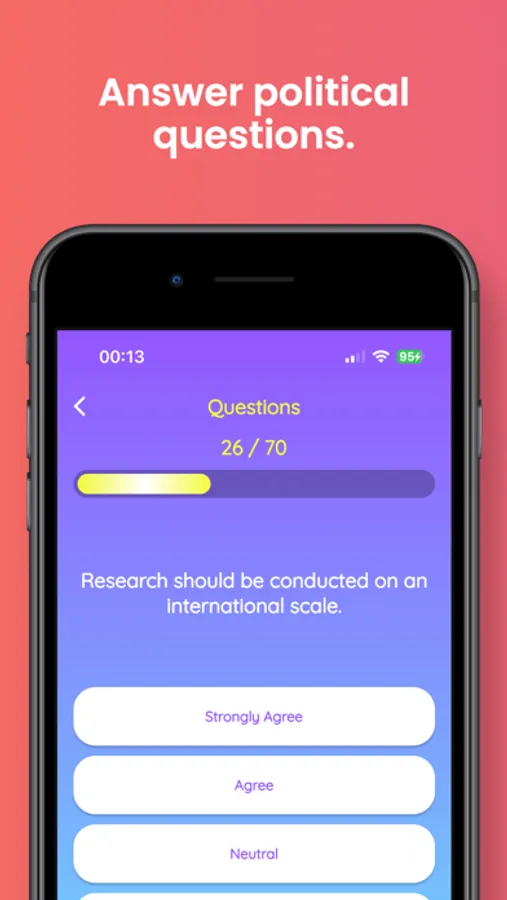 In our application, we ask questions about ideological issues and give results that determine the political views of the users. Our test contains a wide variety of questions covering different political views. These questions will help users understand their thoughts on issues that affect their political views.