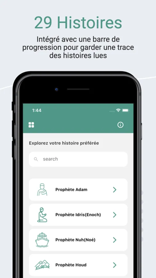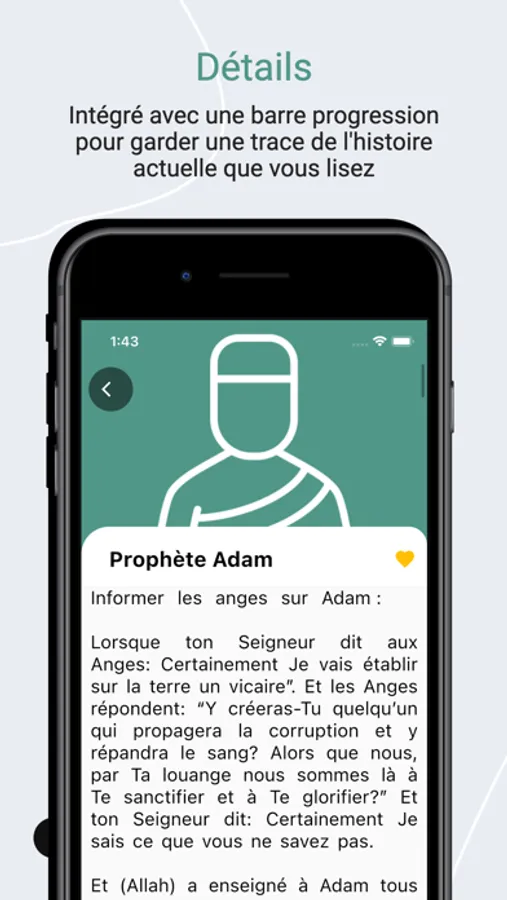Avec cette application, vous avez un accès numérique à l'intégralité de l'histoires de prophètes. Intégré avec une barre de progression pour garder une trace des histoires lues et de l'histoire actuelle que vous lisez. Un module pour réinitialiser toutes vos données et nous contacter pour vos remarques
