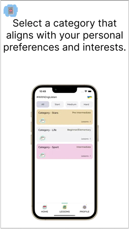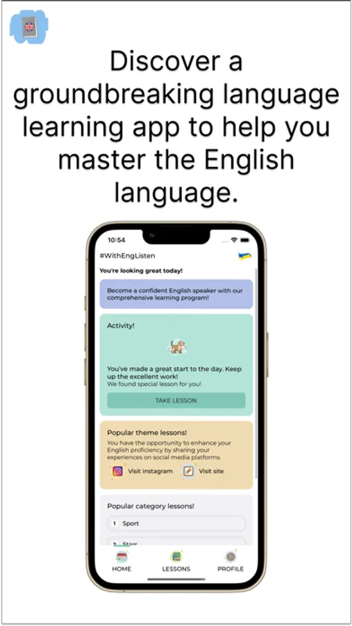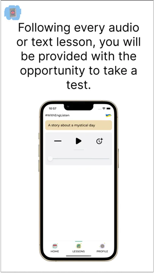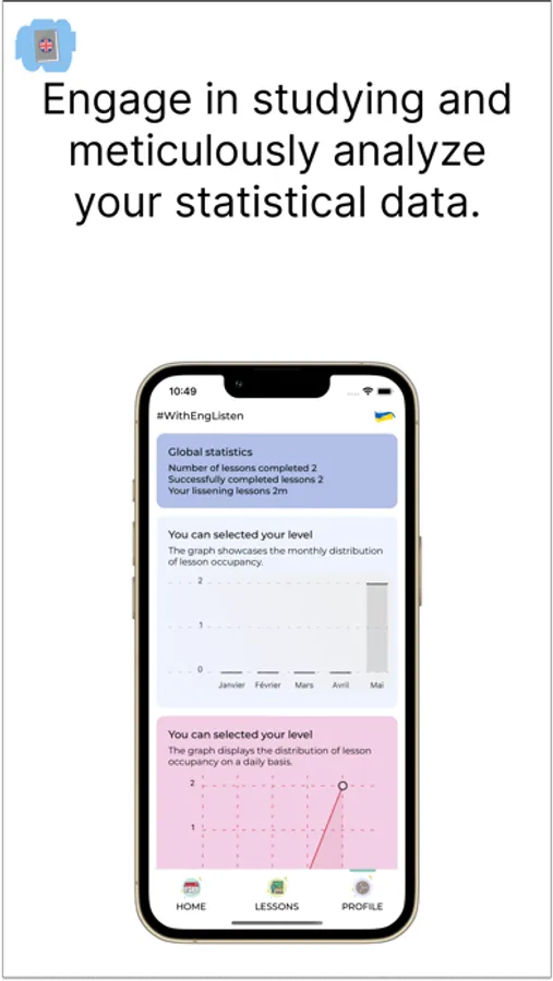 Embark on an immersive English learning experience with our text or audio lessons and interactive tests. Track your progress with comprehensive statistics to enhance your studying journey.