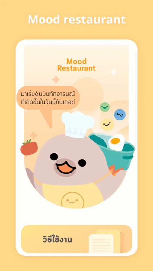 Mood restaurant เป็นแอพพลิเคชันที่จะทำให้ผู้ใช้งานได้ทบทวนและสะท้อนอารมณ์ของตนเองในแต่ละวันผ่านการเชื่อมโยงกับอาหาร