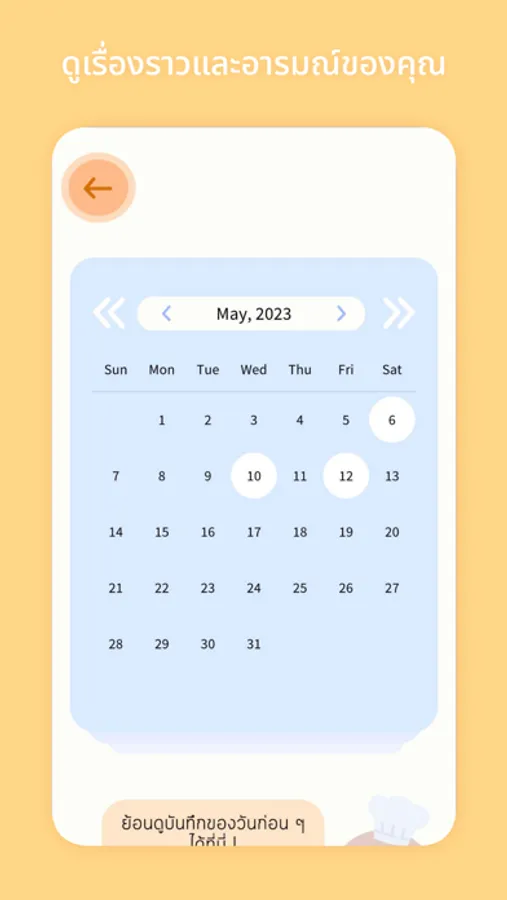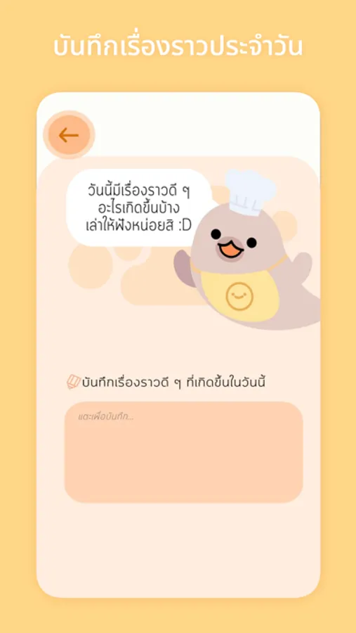 - บันทึกเรื่องราว ทั้งเรื่องดีและไม่ดี รวมถึงอารมณ์ในแต่ละวัน เก็บเป็นบันทึกให้ผู้ใช้งานได้เห็นอารมณ์ประจำวันของตนเอง