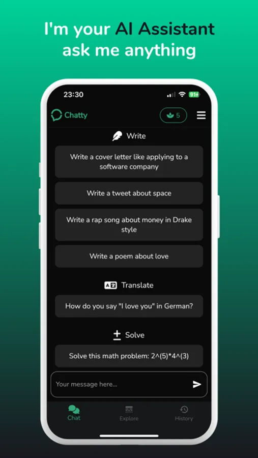Chatty can solve any math problem in a snap and provide you with clear, step-by-step explanations.