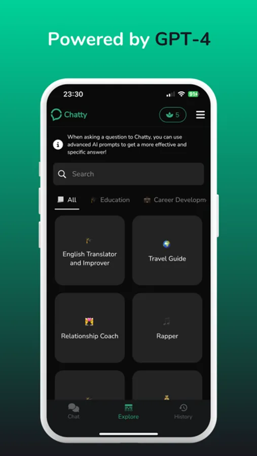 Chatty is a revolutionary artificial intelligence assistant powered by GPT-4 technologies. Thanks to Chatty, it helps you in many different areas such as writing stories, essays and tweets, while answering your questions instantly.