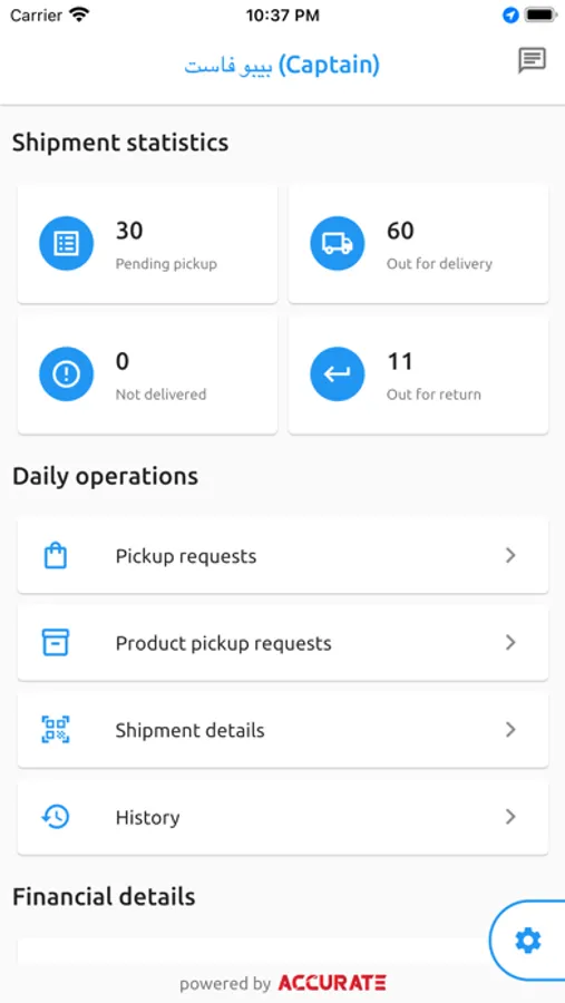 يسمح التطبيق لجميع العملاء في جميع أنحاء الجمهورية بإدارة تسليم واستلام الشحنات باستخدام الهاتف المحمول