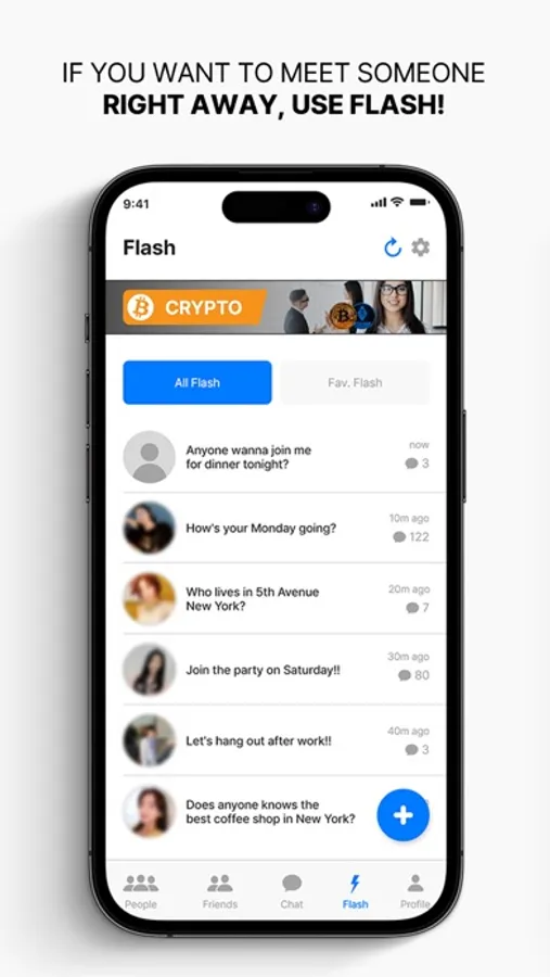 It's a chat application for people who want to make new friends interested in cryptocurrency, stocks, and other investments, to gather, enjoy, meet, and share.