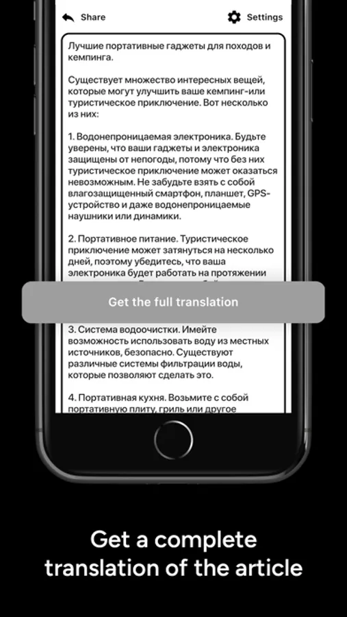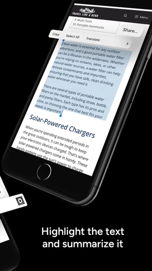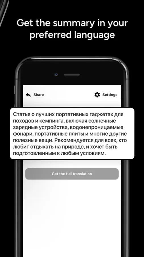 Integrate Summarizr seamlessly with your device's sharing capabilities for quick and easy summarization and translation directly from your browser or other apps.