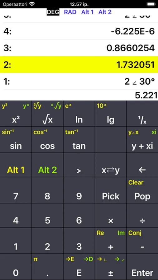It supports basic arithmetic, trigonometrical, logarithm and exponent calculations for real and complex numbers. Both degrees and radians can be used for trigonometrical functions.