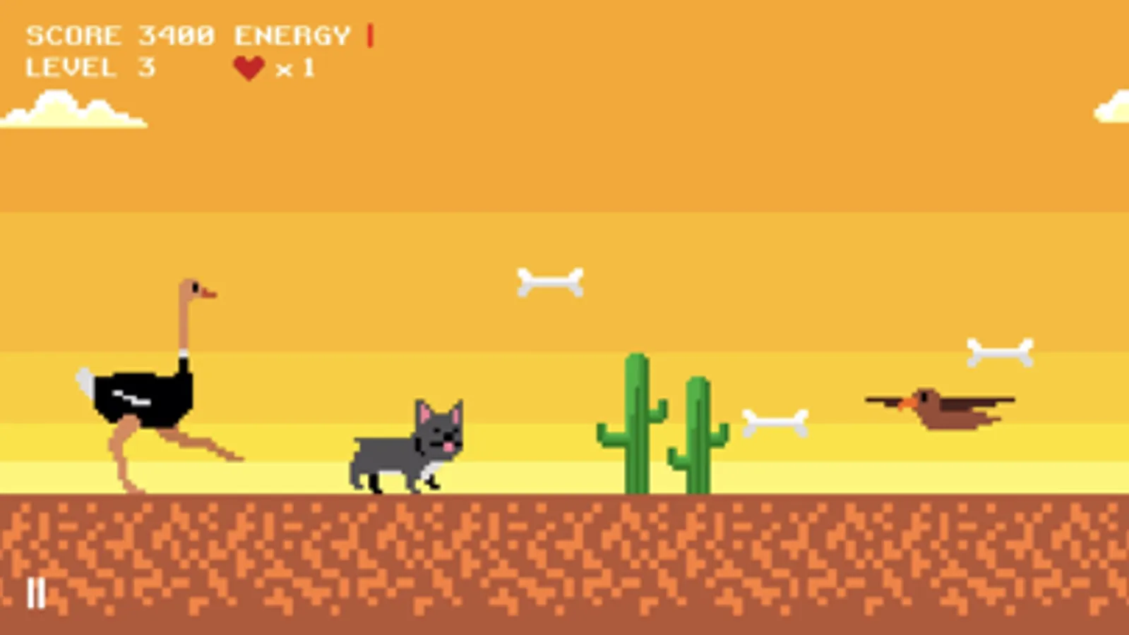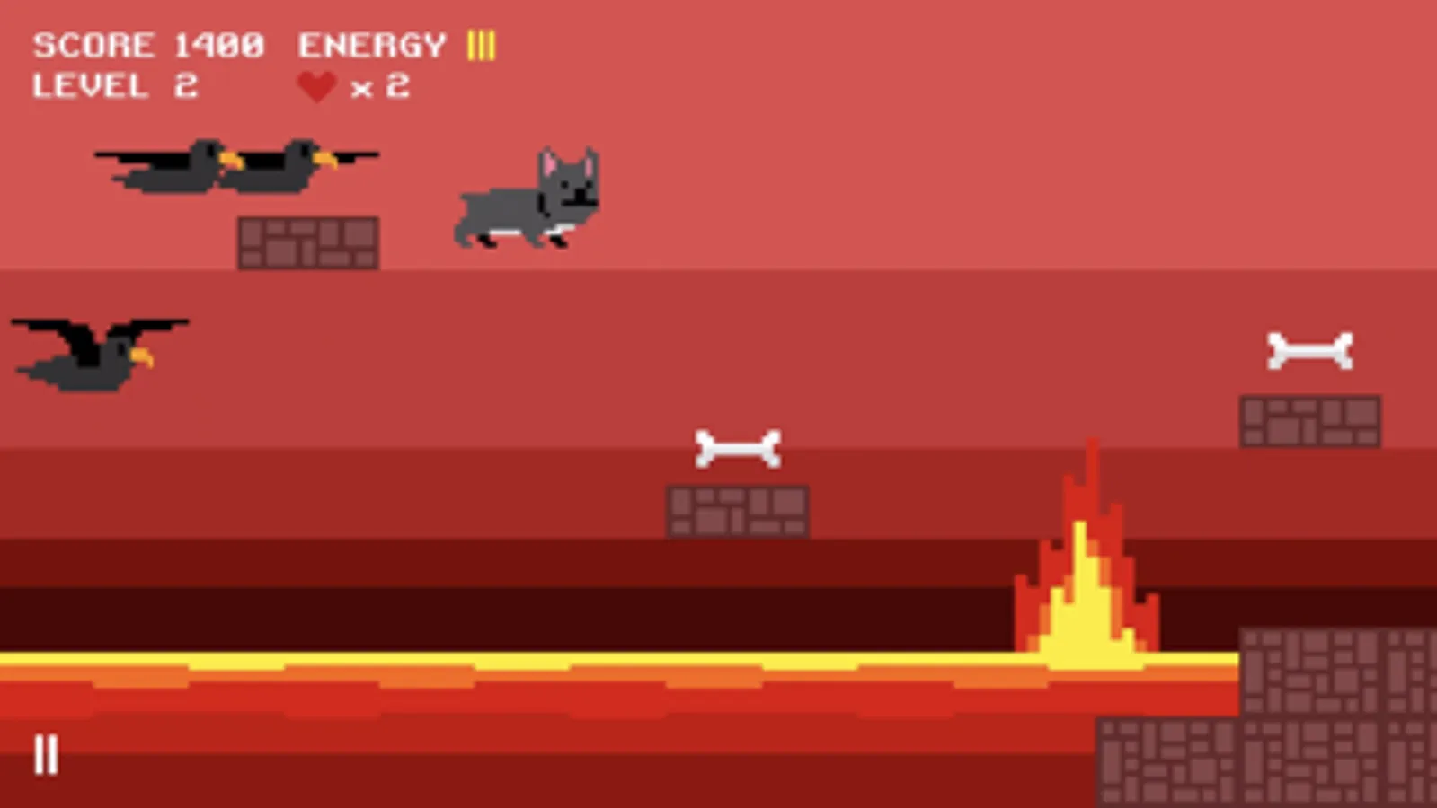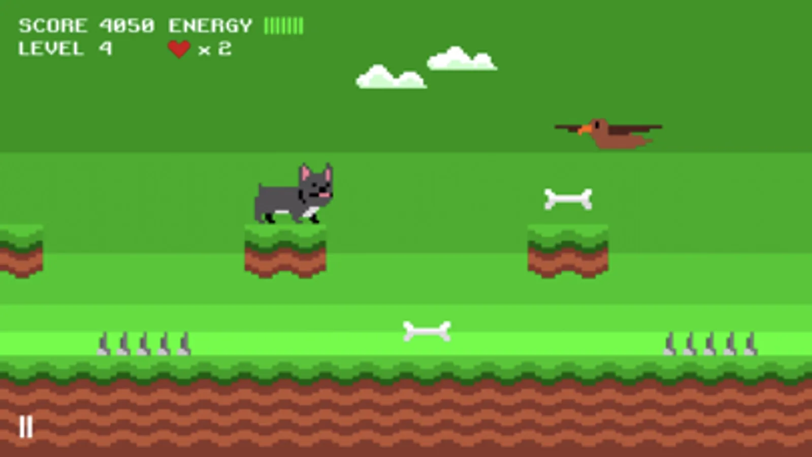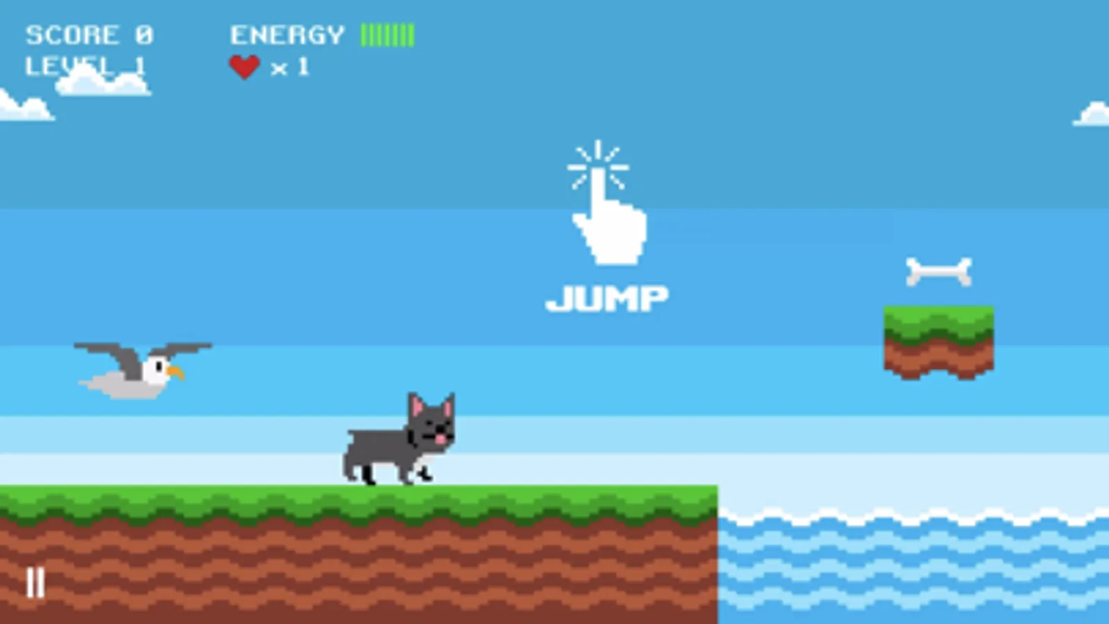 Live a great adventure! Help a little French Bulldog to go through different levels in search of bones, while avoiding multiple obstacles and enemies. You only have to tap the screen with one finger to enjoy a fun gaming experience that will take you back in time.