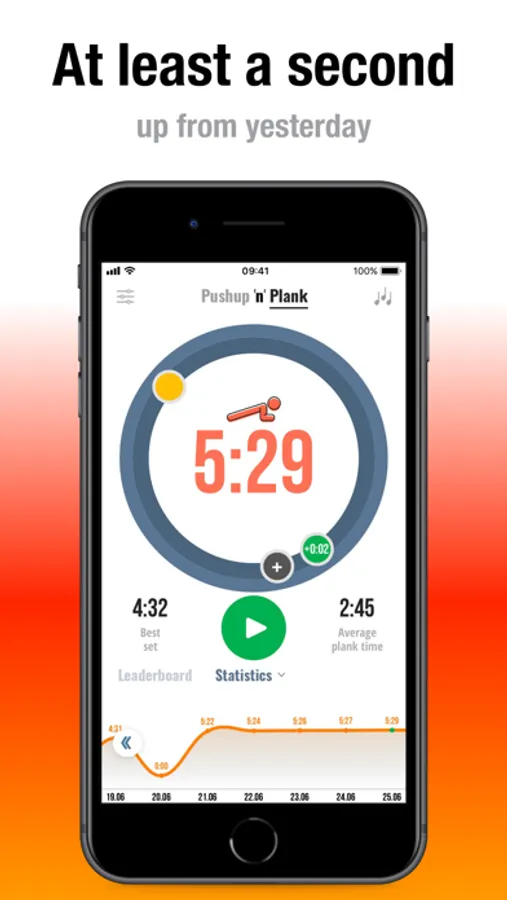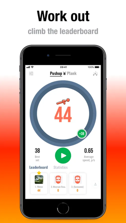 We use the selfie camera to count the number of push-ups and time in the plank. Just place the phone in front of you on the floor, press "Start" and take the right stand so that your face is in the frame of the selfie-camera. The workout will start automatically. Have a quick workout or create a regular one with advanced options. Exercise in different stands and push-up bars. All scheduled workouts will be displayed as an active circles on the central 24-hour time circle (separately for each activity). Check your achievements using Statistics (including its extended version). Compare your daily progress with the results of your friends and other users in our Leaderboad. All usefull information is always with you right on the main screen! Registration via Game Center account.