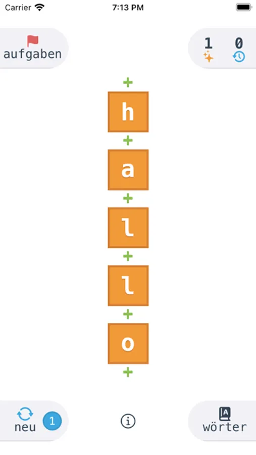 Das ist das Prinzip hinter swop: Finde so viele neue Wörter wie möglich, indem du immer nur einen Buchstaben des Wortes veränderst. So wird aus "Demo" > "Emo", aus "Rose" > "rote" oder aus "alt > halt". Dafür braucht es nur drei simple Spielzüge, du kannst Buchstaben entweder entfernen, verändern oder hinzufügen.