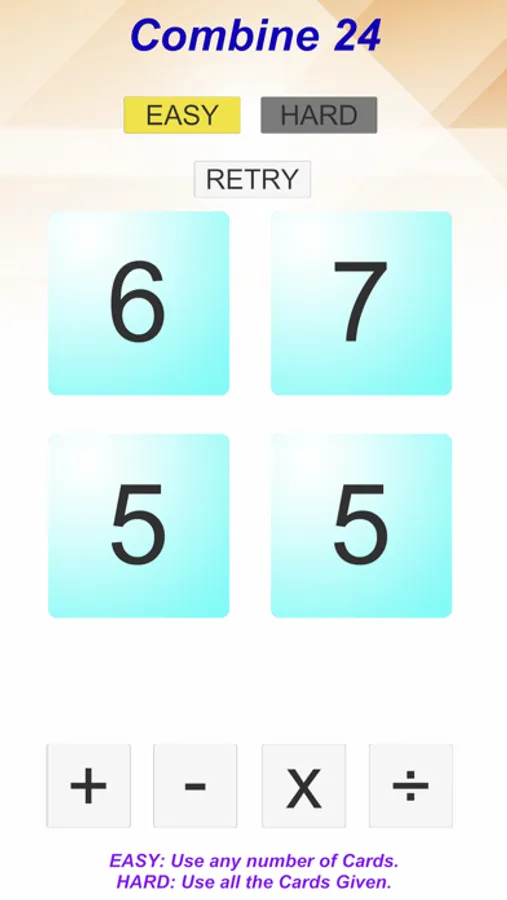 1 Easy : You can use any number of cards; Hard: You should use all the cards