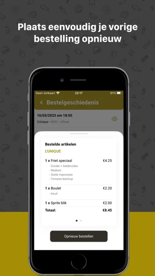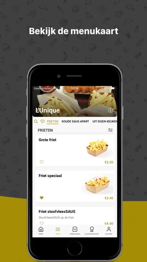 Een heerlijk pak friet, verse maaltijd, lekkere burger of smakelijk broodje zonder lange wachtrij? Download de L’Unique app en bestel online.