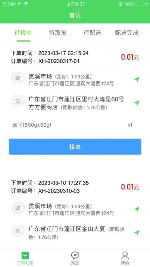 同城菜场骑手端是专为配送员量身定制的配送App,服务于广大的加盟商和同城菜场自营配送团队,旨在帮助配送员更好、更快地为同城菜场的商家及顾客提供配送服务。骑手可以更加方便地接收配送订单、管理订单信息、查看统计数据等。