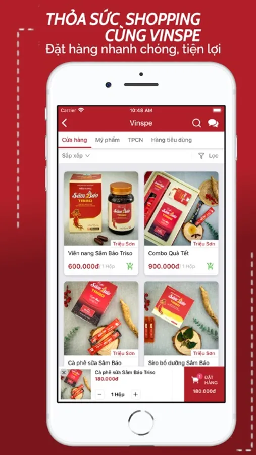Vinspe là ứng dụng đầu tiên tại Việt Nam giúp khách hàng có thể tiếp cận và chọn mua các loại nông sản, đặc sản vùng miền nổi tiếng. Chúng tôi chuyên cung cấp các sản phẩm từ sâm báo: đồ uống giải khát, thực phẩm, mỹ phẩm, thực phẩm bảo vệ sức khỏe. Bên cạnh đó, chúng tôi cung cấp các sản phẩm đặc trưng, nổi tiếng của các vùng miền ở 63 tỉnh thành trên cả nước.