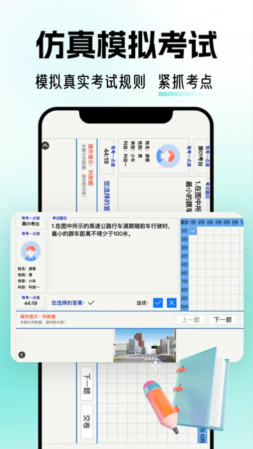 模拟考试:还原真实考试出题规则,练习理论考点;