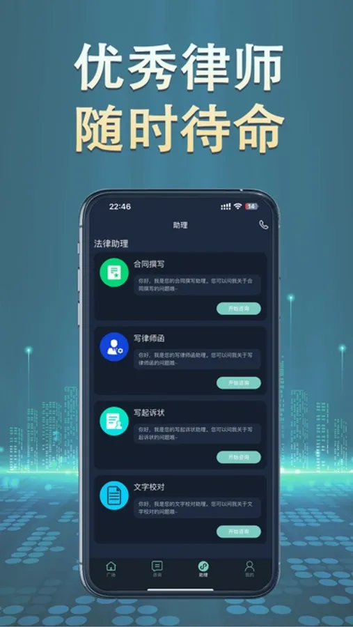 平台提供高效、快速、专业的法律咨询服务,为全国各地有法律咨询需求的用户提供智能律师在线咨询服务。图文咨询,电话咨询,直接与律师在线或者电话沟通。让您享受无忧咨询服务。覆盖多种法律服务场景,包含但不局限于—离婚纠纷、子女抚养、劳动纠纷、拆迁安置、交通事故、房产纠纷、债权债务、合同纠纷、侵权问题、医疗纠纷、行政诉讼、刑事辩护、知识产权、公司法等。