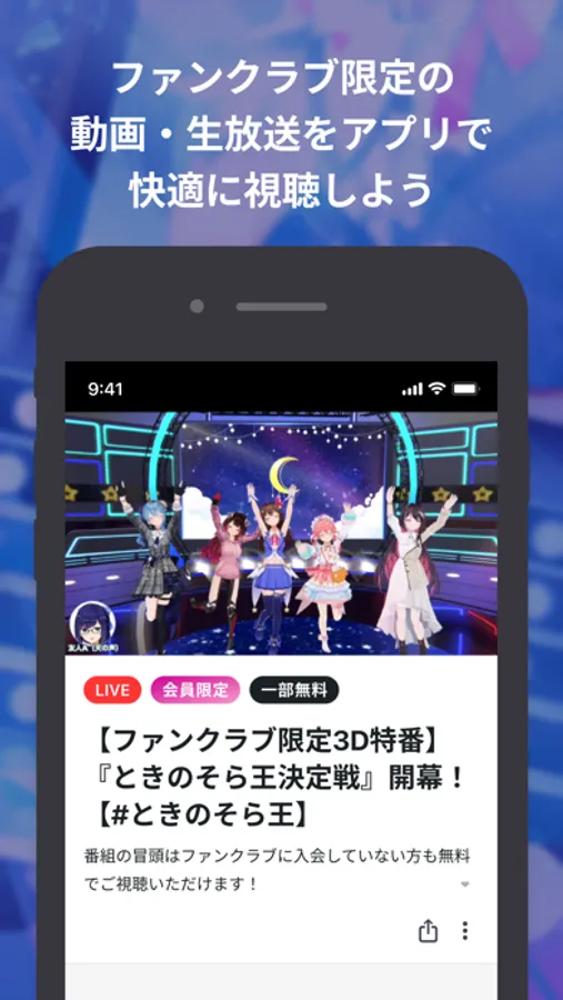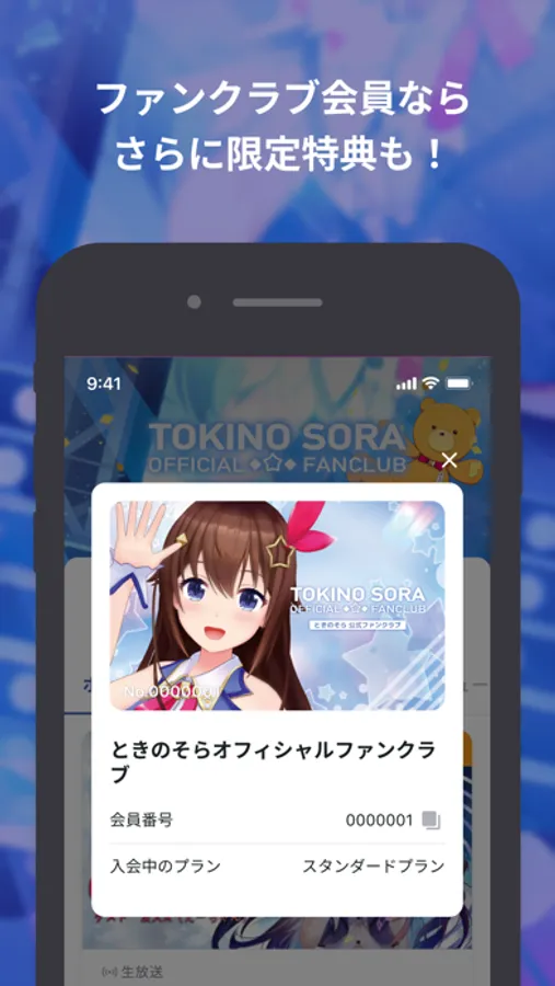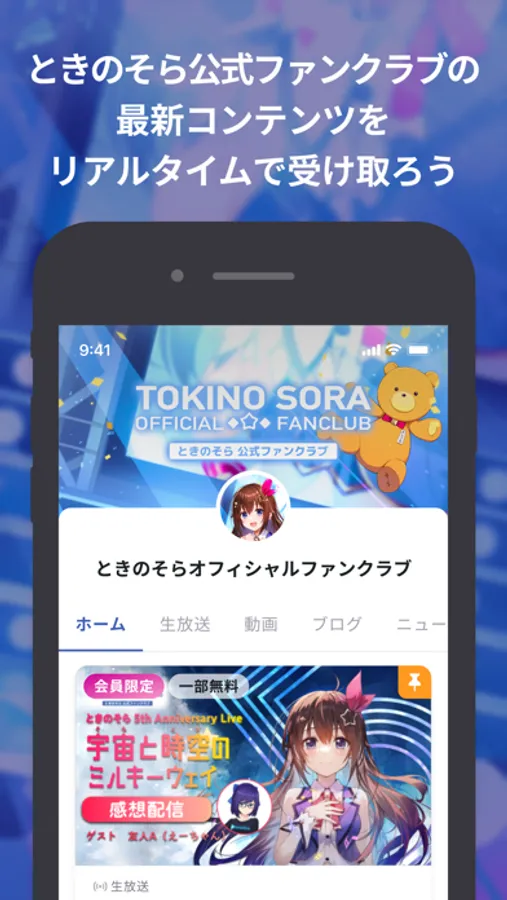 女性VTuberグループ「ホロライブ」の0期生、ときのそら「オフィシャルファンクラブ」アプリです。