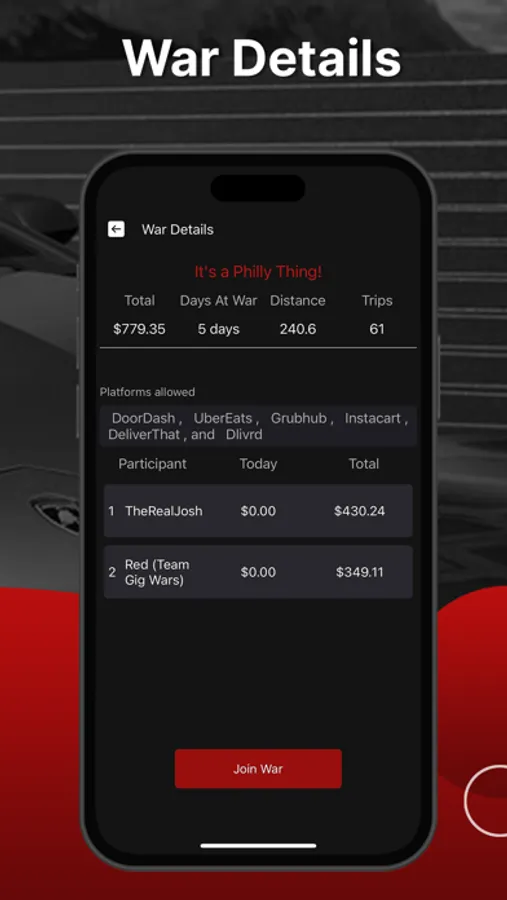 Introducing Gig Wars - the ultimate app for gig drivers looking to up their game and take their earnings to the next level! With the Gig Wars app, drivers can compete head-to-head with other drivers, all while tracking their earnings, mileage, and completed trips in real-time.