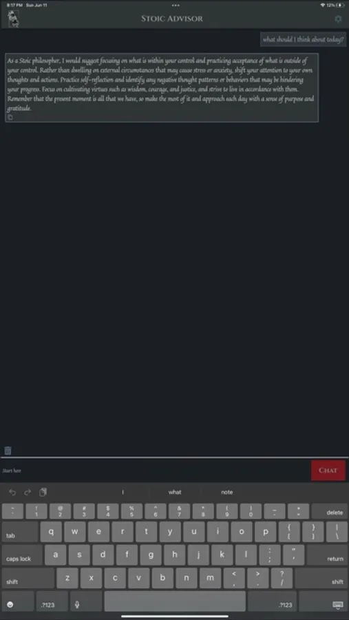 Introducing the Stoic Advisor App, your pocket companion channeling the wisdom of Marcus Aurelius. Engage in enlightening conversations with our AI-powered Stoic Chat, explore the depths of Stoicism with a Mindset Trainer, and immerse yourself in complete Stoic works. Unlock the guidance of a personal Stoic Advisor right at your fingertips. Embrace the power of Stoicism and download the app today!