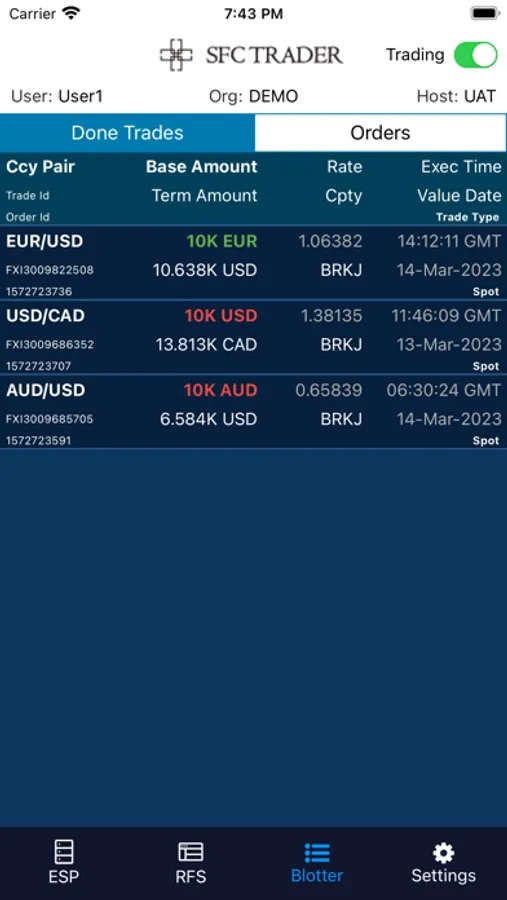 SFC Trader allows you to monitor and trade currency prices on the Open Currency Exchange™ (OCX™) from your iPhone through a simple and intuitive interface. SFC FX features an advanced market design that delivers unparalleled execution performance by combining direct, indirect and resting order liquidity in a single unified matching engine. Unlike legacy FX platforms which fragment liquidity into separate rooms, SFC FX has just one liquidity pool: yours.